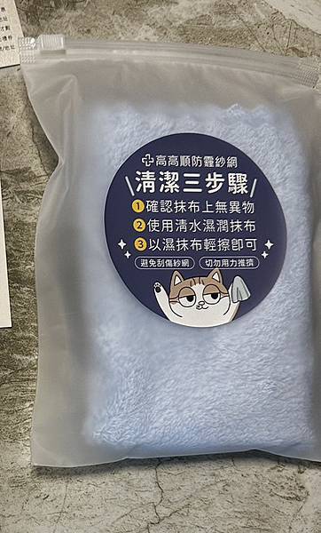 有大概說明了一下防霾紗窗清理方法,還送了一塊有可愛貓貓外包裝圖案的擦拭布,可以藉由擦拭布來保持防霾紗窗的清潔度,其中保固卡也是有的,上次鄰居的問題就好險有保固卡保障,也可以藉由此來看出高高順是願意後續服務的廠商,我覺得這樣也才能做的久,畢竟保固本來就是消費重要的一環,包括桃園防霾紗窗的安裝也是一樣。